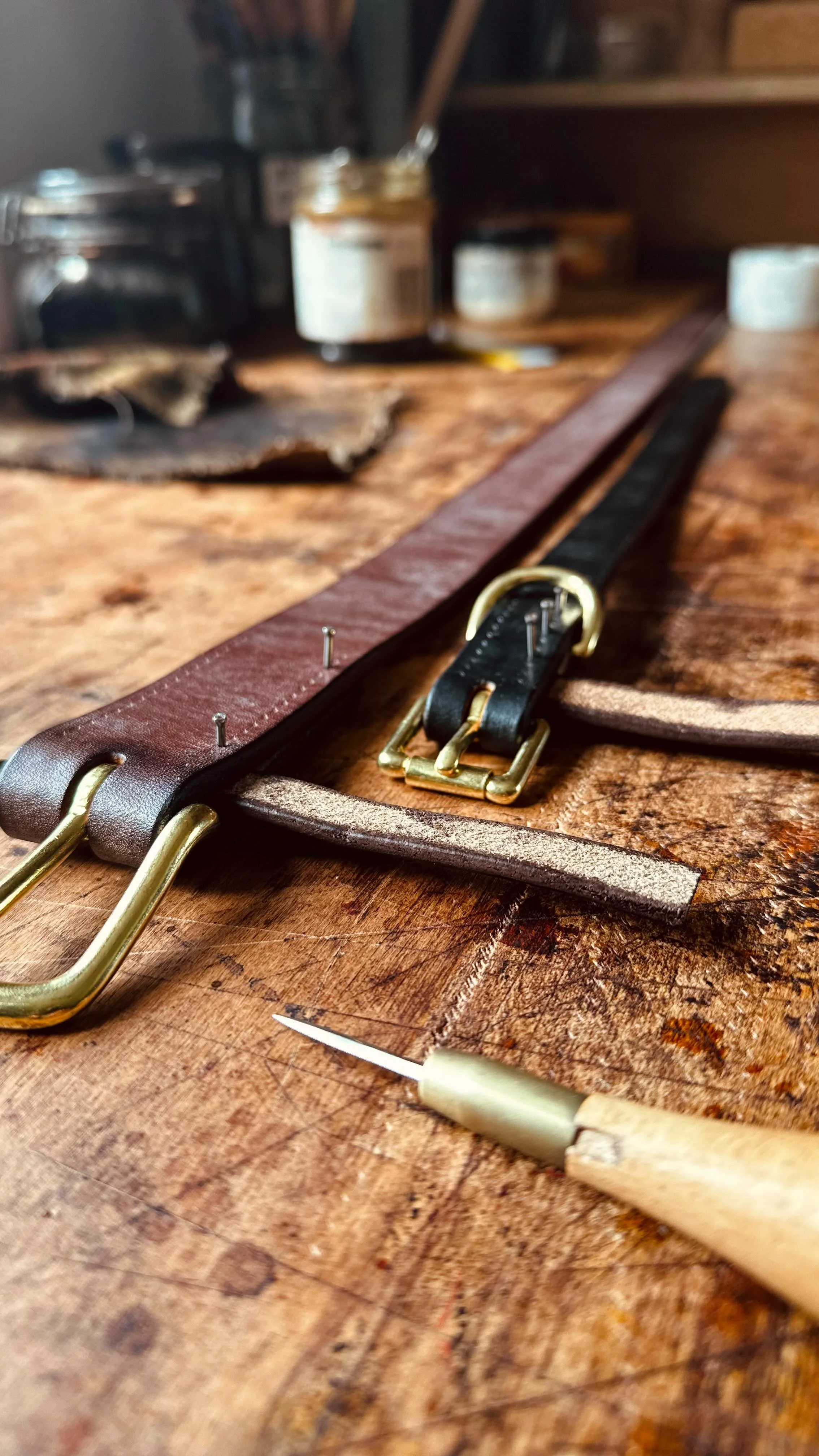 Through leathercraft workshops and courses in Devon, I teach traditional techniques to beginners and fellow makers. I focus on fostering appreciation for the materials and methods, helping to keep authentic artisan leatherwork alive.