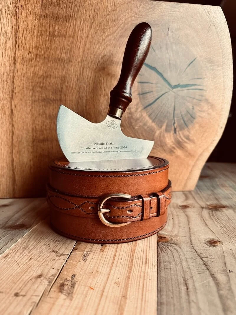I was honoured and humbled to be commissioned by Heritage Crafts to design and create the 2025 Leatherworker of the Year award, with complete creative freedom to craft a piece of my own choosing. I aimed to showcase as many traditional leatherworking techniques as possible, celebrating the heritage of the craft. The award features saddle stitching, box stitching, and butt stitching, along with strap work, belt work, and tub making.